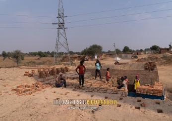 Indian workers in a brick factory, Rajasthan, Mandawa, India