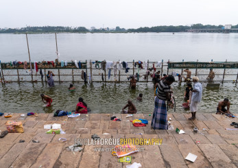Indian people bathing in holy river, Tamil Nadu, Tiruchirappalli, India