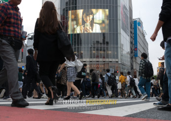 Shibiuya crossing crowded with pedestrians, Kanto region, Tokyo, Japan