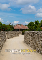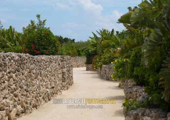 Sandy alley in Hoshinoya hotel, Yaeyama Islands, Taketomi island, Japan