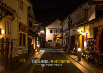 Old houses by night in Bikan historical quarter, Okayama Prefecture, Kurashiki, Japan