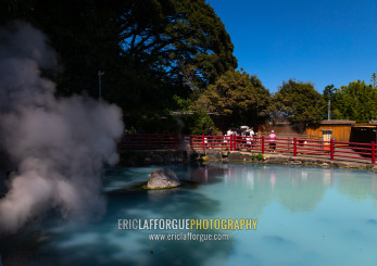 Pond with turquoise color in Kamado jigoku cooking pot hell, Oita Prefecture, Beppu, Japan