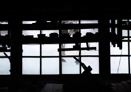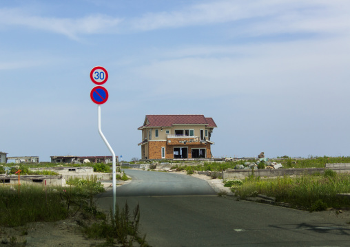 Devastated marine house in the highly contaminated area after the daiichi nuclear power plant irradiation and the tsunami, Fukushima prefecture, Futaba, Japan