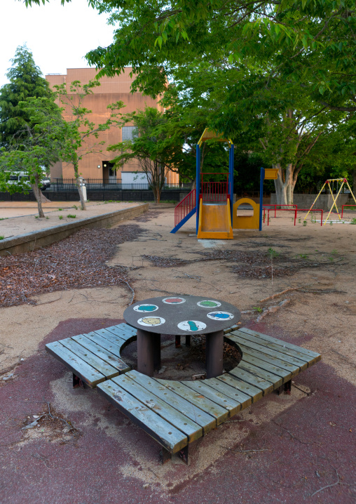 Abandoned children playground in an area that was affected by the 2011 nuclear disaster, Fukushima prefecture, Tomioka, Japan