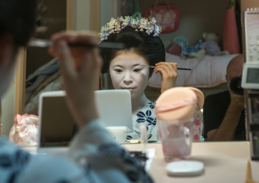 16 Years old maiko called chikasaya during a make up session, Kansai region, Kyoto, Japan