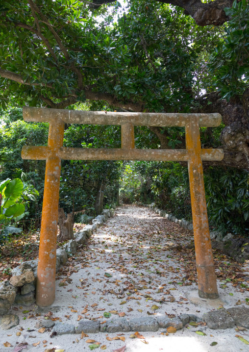 Torii gate in a small temple, Yaeyama Islands, Taketomi island, Japan