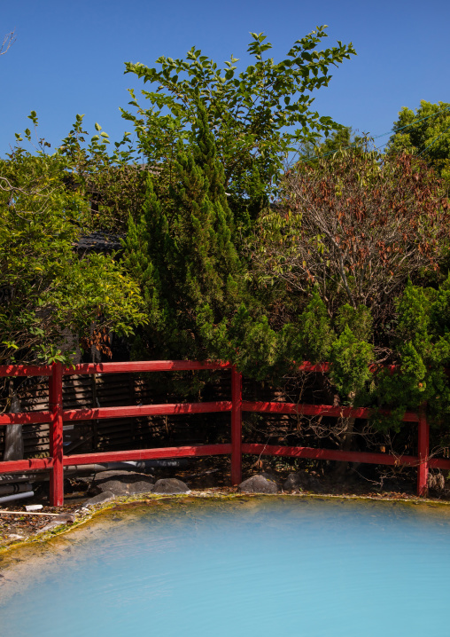 Pond with turquoise color in Kamado jigoku cooking pot hell, Oita Prefecture, Beppu, Japan
