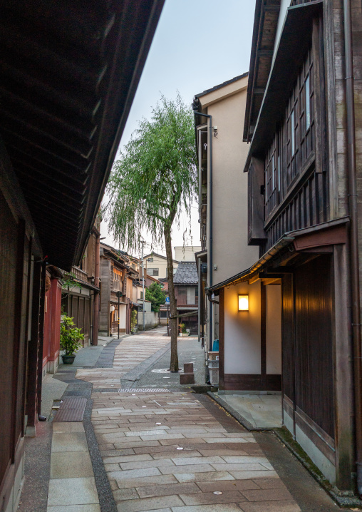 Wooden houses in Higashichaya old town, Ishikawa Prefecture, Kanazawa, Japan