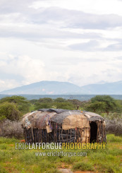 Saburu tribe village with huts, Samburu County, Samburu National Reserve, Kenya