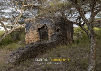 Takwa ruins in the middle of acacias, Lamu, Manda island, Kenya