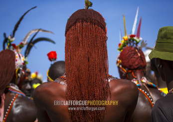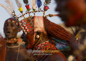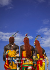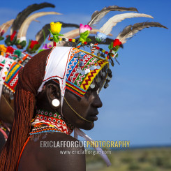 Rendille warriors with long braided hair, Turkana lake, Loiyangalani, Kenya