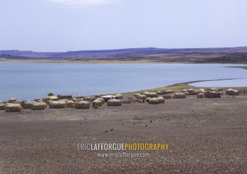Grass huts in el molo tribe village, Turkana lake, Loiyangalani, Kenya