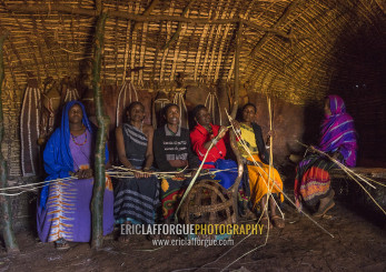 Borana tribe women inside a hut, Chalbi desert, Marsabit, Kenya