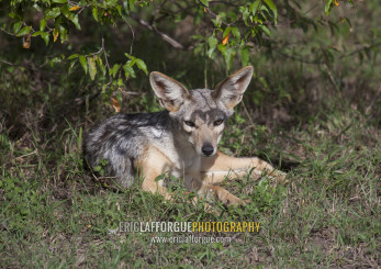 Young black-backed jackal (silver-backed jackal), Rift valley province, Maasai mara, Kenya