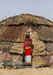 Rendille tribeswoman wearing traditional headdress and jewellery, Marsabit district, Ngurunit, Kenya