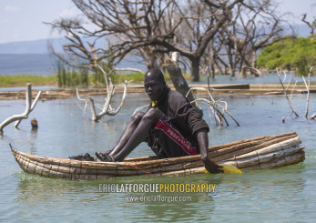 Fisherman in traditional boat rowing , Baringo county, Baringo, Kenya