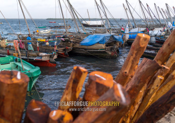 Dhows standing by the dockside, Lamu county, Lamu town, Kenya