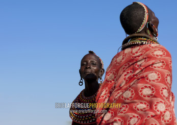 Samburu tribe women with beaded necklaces dancing, Samburu County, Maralal, Kenya
