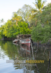 Fishing dhow moored along coastline, Lamu county, Matondoni, Kenya