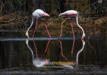 Pink flamingos eating in a lake, Rift Valley Province, Nakuru, Kenya