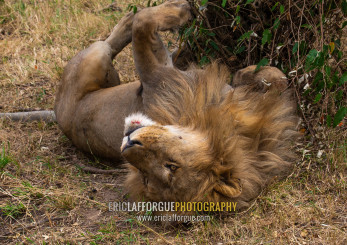 Lion rolling on its back, Rift Valley Province, Maasai Mara, Kenya