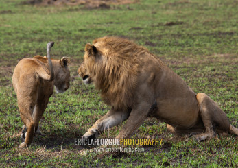 Lions couple ready to mate, Rift Valley Province, Maasai Mara, Kenya
