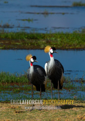 Grey crowned cranes couple (Balearica regulorum), Kajiado County, Amboseli, Kenya