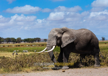 Elephant (Loxodonta africana) with long tusks, Kajiado County, Amboseli, Kenya