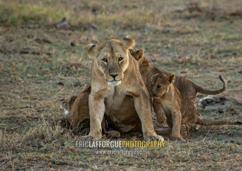 Lioness with her cubs, Kajiado County, Amboseli, Kenya