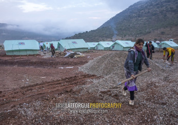 Yezedi Refugees Displaced From Sinjar Making A New Road In A Camp, Lalesh Temple, Kurdistan, Iraq