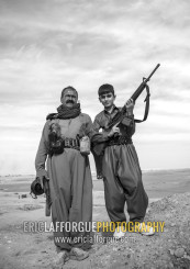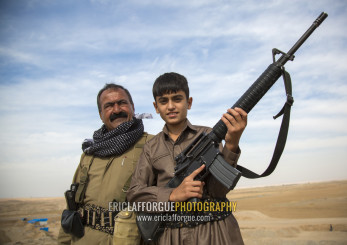 Kurdish General And His Son On The Frontline, Kirkuk, Kurdistan, Iraq