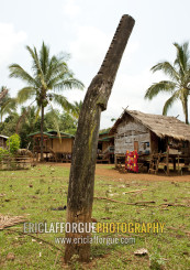 Alak minority sacrifice crocodile pillar, Boloven, Laos