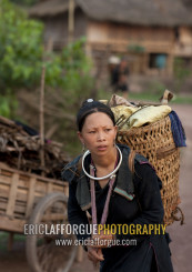 Lantaen minority woman carrying a basket, Nam deng, Laos