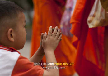 Lao buddhist monks collecting alms in luang prabang, Laos