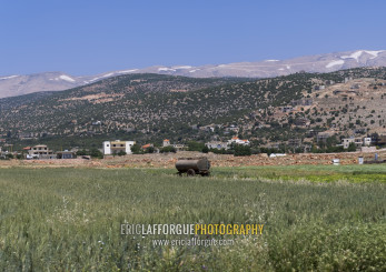 Water tanks in a field, Baalbek-Hermel Governorate, Baalbek, Lebanon