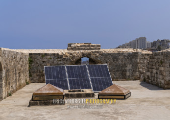 Solar panels on the roof of the Citadel of Raymond de Saint Gilles, North Governorate, Tripoli, Lebanon