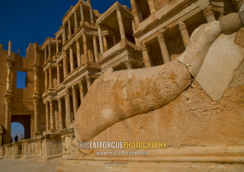 Dolphin statue in theatre in ancient roman city, Tripolitania, Sabratha, Libya