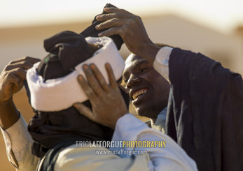 Tuareg man putting turban, Tripolitania, Ghadames, Libya