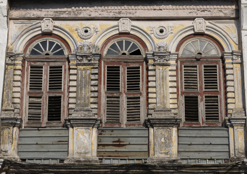 Old Colonial House Windows In The Unesco World Heritage Zone, Penang Island, George Town, Malaysia
