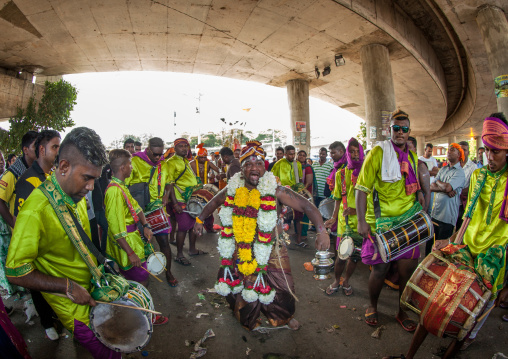 Musicians In Batu Caves In Annual Thaipusam Religious Festival, Southeast Asia, Kuala Lumpur, Malaysia