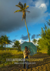 Boy With An Umbrella In The Country, Inhambane, Inhambane Province, Mozambique
