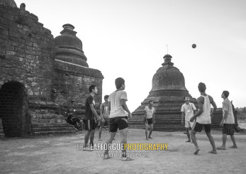 Men Playing Chinlone In Front Of Stupas, Myanmar