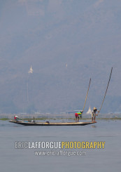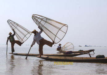 Traditional Fishermen With Fish Trap In Boat, Inle Lake, Myanmar