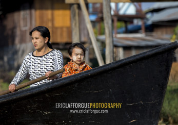 Woman Rowing In A Boat, Inle Lake, Myanmar