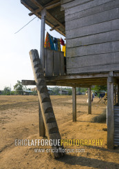 Panama, Darien Province, Alto Playona, Ladder On An Embera Indian House