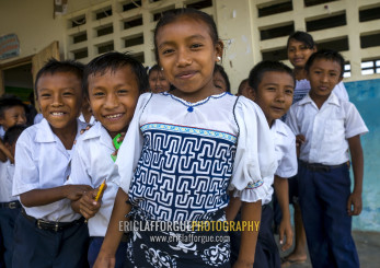 Panama, San Blas Islands, Mamitupu, Kuna Tribe Children In A School