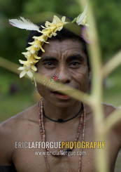 Man in traditional clothing during a ceremony, Milne Bay Province, Trobriand Island, Papua New Guinea
