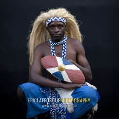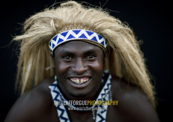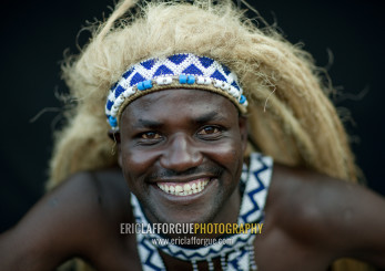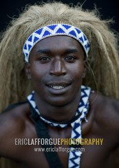 Traditional intore dancer with a headwear, Lake Kivu, Ibwiwachu, Rwanda