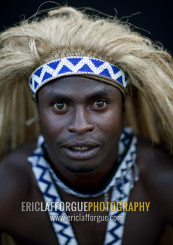Traditional intore dancer with a headwear, Lake Kivu, Ibwiwachu, Rwanda