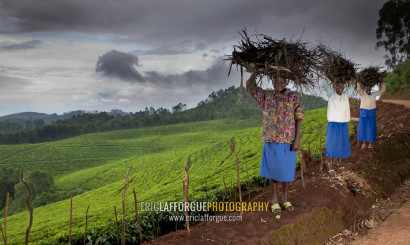 Rwanda women carrying wood on her head, Western Province, Cyamudongo, Rwanda